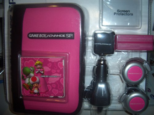 Game Boy Advance Sp Pink Starter Kit with Screen Protectors, Bag Rag, Car Adaptor, Games Cases, Headphones and Folio. Feature
