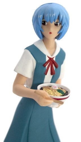 Neon Genesis Evangelion fans take notice. The lovely Ayanami Rei is now available in a kawaii school uniform, holding a bowl of noodle. The figure is about ~4.75" tall and comes with a 0.25" mini-stand.